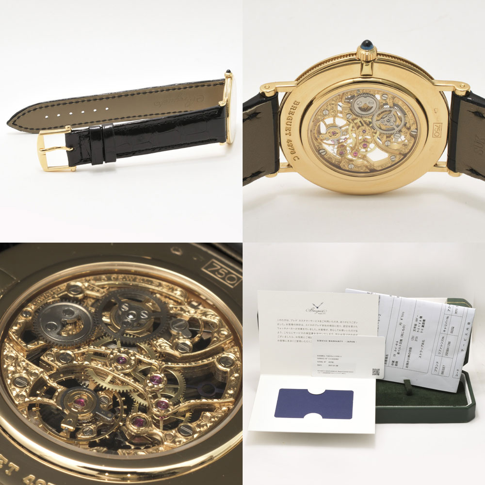 - *スウォッチグループジャパン経由ブレゲスイス本社にて磨きを含むオーバーホール済ですので、たいへんきれいな中古です。厳しい見方をすればエッジ部分等のシャープさ等について磨きの影響が感じられなくもないのですが、年代を考慮すれば十分に良い状態です。*ガラス風防にキズはありません。*OHの際、針は交換されています。*文字盤はきれいな状態です。*スケルトンのムーブメントは年代を考慮すれば、たいへんきれいな状態です。OH時に、きれいに洗浄されているようです。*純正革ベルトは新品に交換済です。