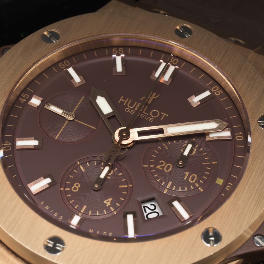 - *製造年はよくわからないのですが、2015年頃よりは古いものです。HUB4100ムーブメントは、何度かマイナーチェンジが行われていますが、この個体に搭載されているものは、最初の方のタイプだと思います。ちなみに、最初のビッグバンクロノグラフは2005年発表のようです。