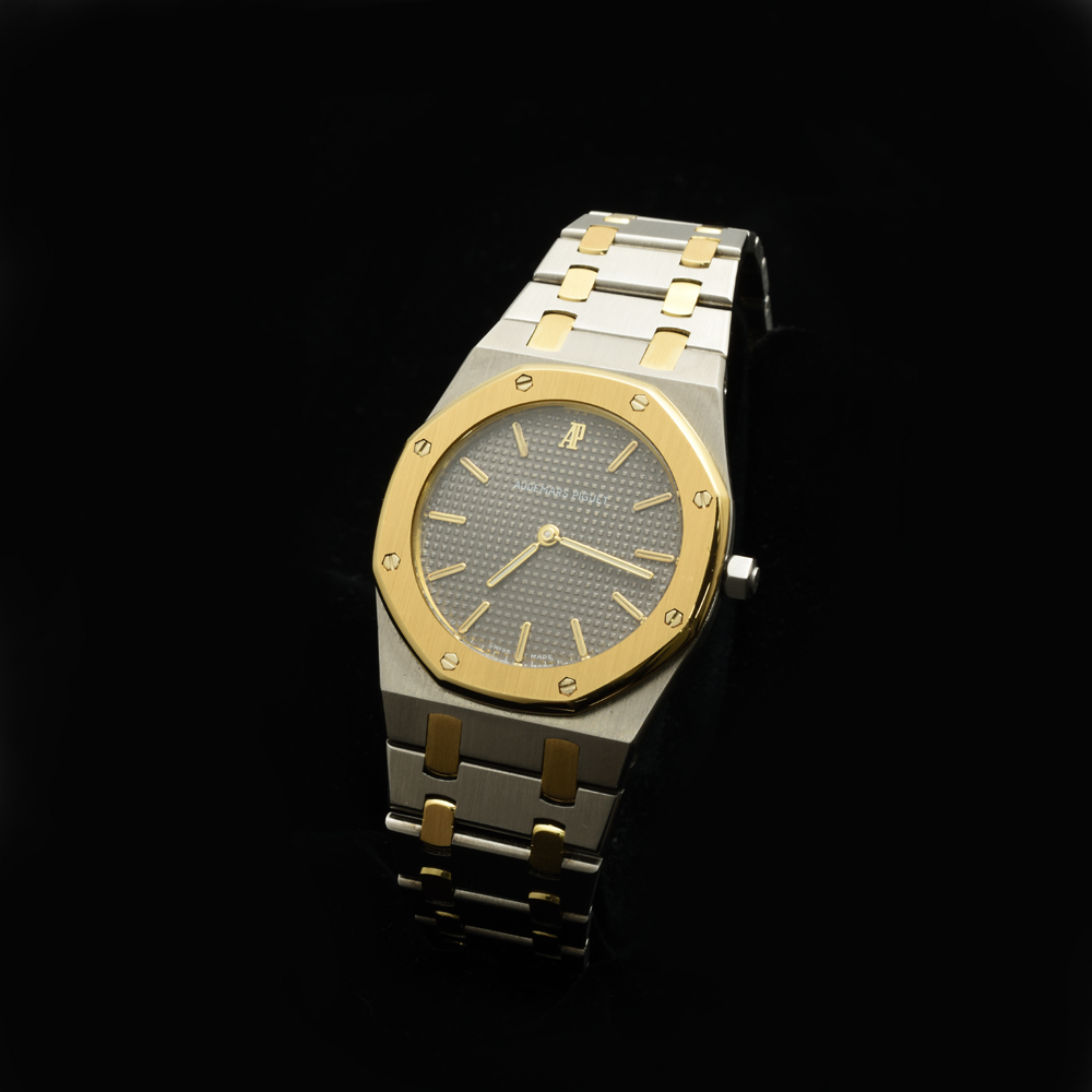 *ロイヤルオークはスポーティで水に強そうな感じに見えるかもしれませんが、実際は日常生活防水のモデルも多いです。このモデルは5気圧防水(日常生活防水)ですので、日常生活において、多少、水がかかってしまっても耐えられる程度の防水性能とお考え下さい。