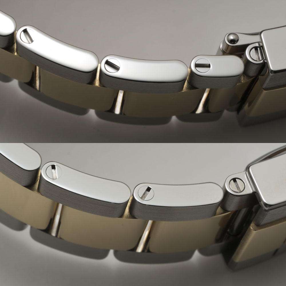 - コンビ *一般的には「コンビ」と言われていますが、正確には「ロレゾール」だそうです。ロレックス最初のコンビモデルは1930年代初頭に発表され1933年に「ロレゾール」という名称が商標登録されたそうです。「ロレゾール」とはゴールドとステンレススチールを用いたモデルの素材についてのロレックス独自の名称です。このモデルの場合はイエローゴールドとステンレススチールが用いられていますので「イエローロレゾール」となります。但し、ロレックスの公式ウェブサイトの一覧ページでは「オイスタースチール&イエローゴールド」といった表示になっています。「ロレゾール」という名称があまり一般的ではないことはロレックスも認識しているようです。