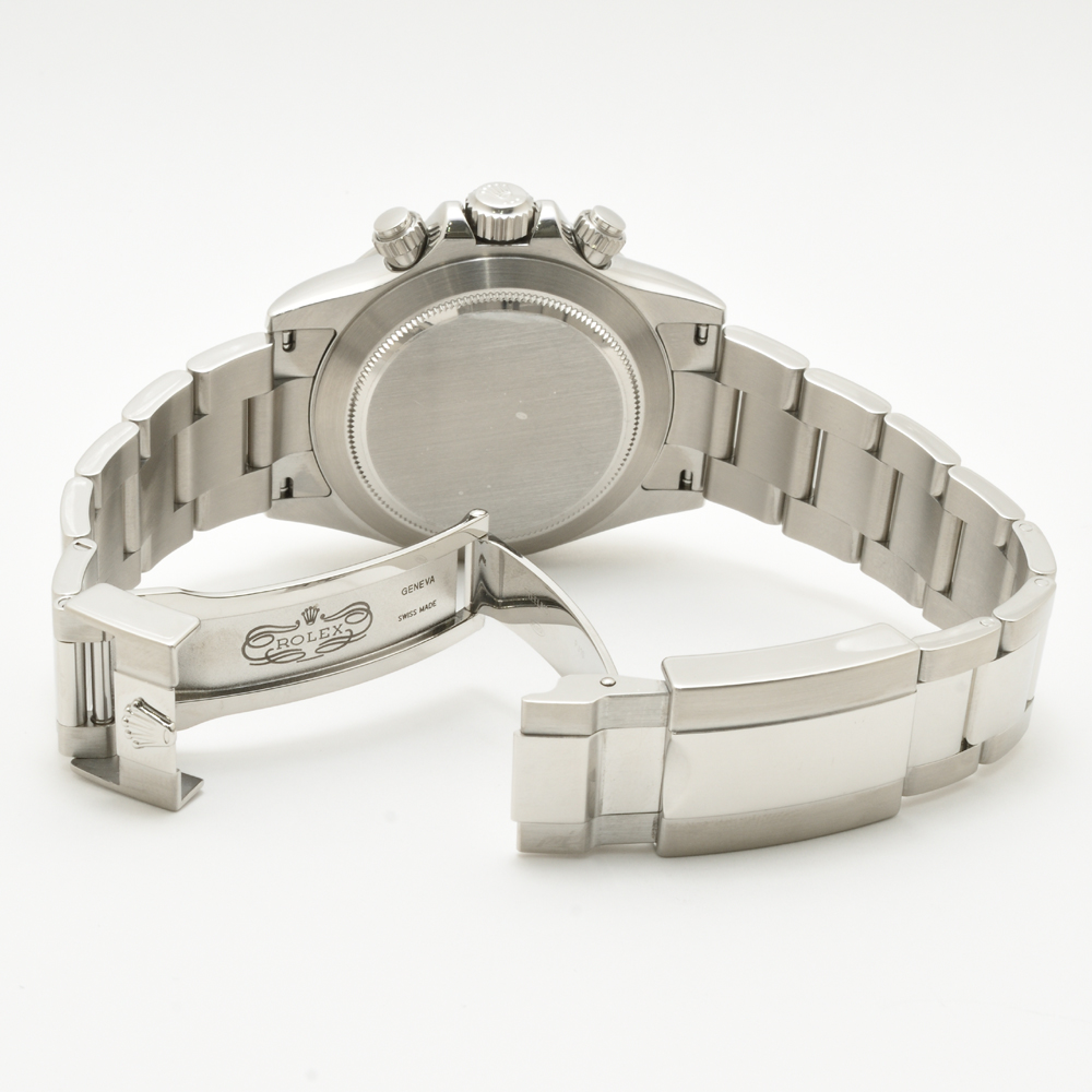 - *日本ロレックスにて2022年3月に磨きを含むオーバーホールを行いました。磨きの影響については、多少磨きの影響が感じられるといったところでしょうか。ブレスは所々、磨きで取り切れなかったキズの跡が見られます。日本ロレックスではベゼルの磨きは行ないませんが、日本ロレックス以外の修理店でベゼルの磨きが行われています。ベゼルも磨きで取り切れなかったキズの跡が見られます。*サファイアガラス風防にキズはありません。*ブレスのヨレは気にならない程度です。*もし日ロレでベゼルを交換する場合の費用は工賃込み税込40,150円(2022年3月現在)です。尚、ベゼルを交換する場合、当時のものとは多少雰囲気の異なるものになります。*裏蓋は透明保護シールが貼られている状態です。