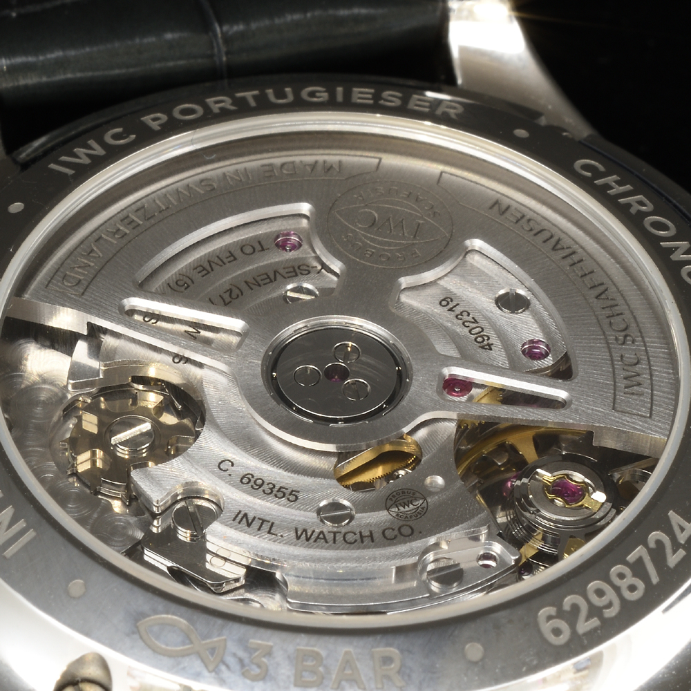 - *自社ムーブメントを搭載した新型のポルトギーゼクロノグラフです。2019年にモデルチェンジが行われたようです。新型も旧型も見た目はよく似ていますが、新型は裏スケになっています。