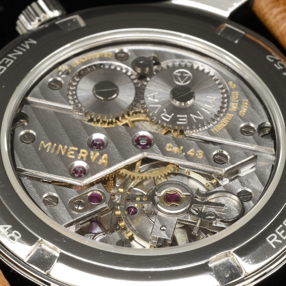 *ミネルバ社は1858年創業の歴史ある時計メーカーです。ムーブメントから自社生産できるスイスでも数少ないマニュファクチュール(自社一貫製造メーカー)のようです。2006年にモンブラン社に買収されていますので、現在では新品でミネルバの時計を入手することはできません。しかしながらミネルバ社の伝統が消滅してしまった訳ではなく、モンブラン社内のミネルバ研究所として存続しているようです。現在ではモンブランの高級ラインの時計でミネルバ社の伝統を感じることが出来るのかもしれません。尚、モンブラン社は1980年代にダンヒル社に買収され、そのダンヒル社は1990年代にリシュモングループに買収されていますので、現在のミネルバ研究所はリシュモングループの一員です。