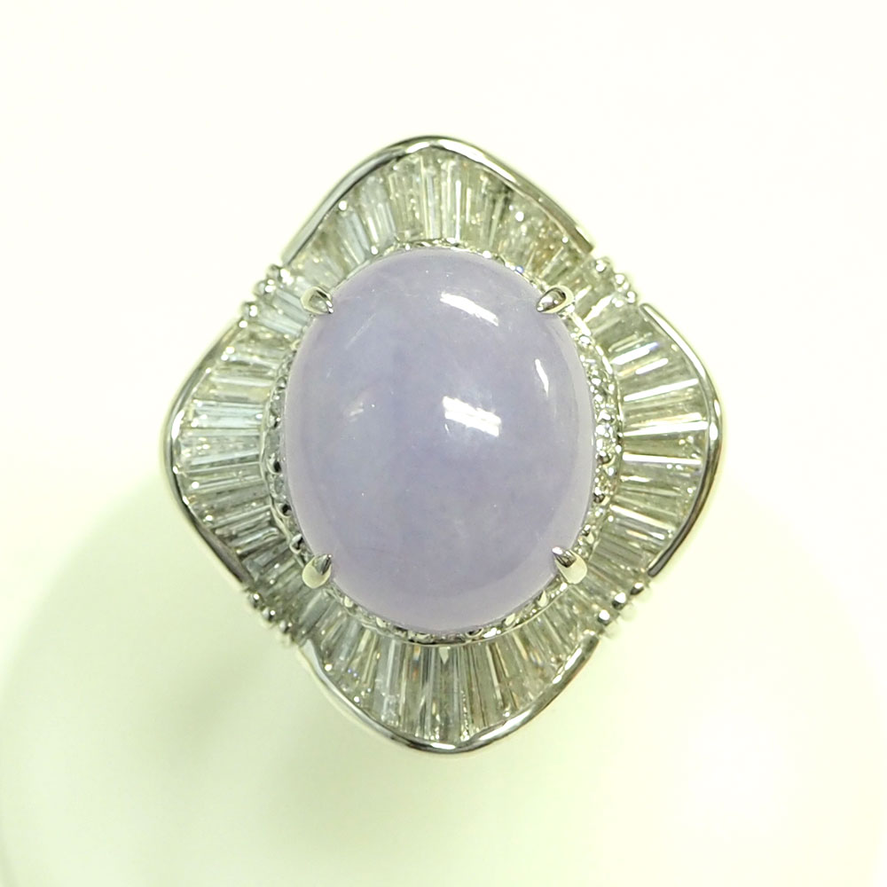 - Pt900 ひすい ラベンダージェイダイトダイヤモンドリング ひすい7.977ct D1.54ct 13号 新品仕上げ済み ¥ 250,000